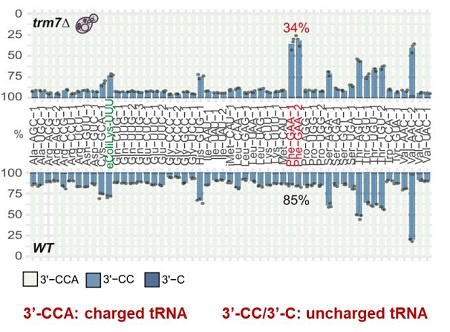 ● 无缝衔接翻译组学研究:通过3’端序列特征区分已负载与未负载氨基酸的tRNA并计算氨基酸负载比例,准确反映翻译活性。