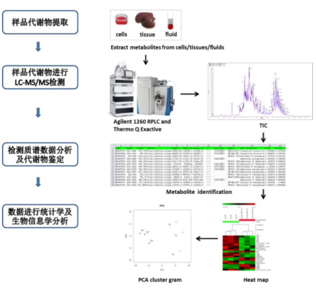 代谢物作为生物学过程的终端产物,其状态改变能够准确地反应细胞功能的变化。研究表明,包括癌症在内的多种疾病,如肝脏疾病、肾病、心血管和神经系统疾病等都与细胞内代谢状态改变导致的生理学紊乱或细胞功能缺失相关联。因此对于机体代谢物的研究分析是十分必要的。非靶向代谢组学主要是针对生物体内代谢的全面生化信息,通过对一定生理状态或特定条件下几乎所有代谢产物同时进行定性和定量分析,以寻找和鉴定差异代谢物。与基因组学,转录组学及蛋白组学相比,作为系统性代谢物分析平台,非靶向代谢组学在代谢物相关疾病诊断标志物的开发与验证以及代谢物相关信号通路机制研究等方面都具有独特优势。